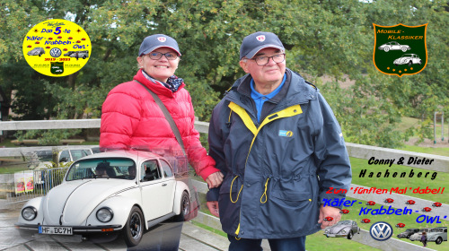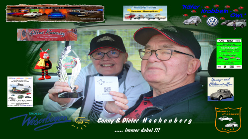 Conny & Dieter H a c h e n b e r g aus Enger sind unermütliche "VW-Käfer - Enthusiasten" ! Sie sind immer gegenwärtig, wenn es um "Oldtimer-Events" geht. Nicht nur in der Region OWL sind Conny & Dieter zu sehen, nein sie sind in ganz Nordrhein-Westfalen "von Nord nach Süd & von West nach Ost" bei kleinen und großen Oldtimer-Events zu sehen. Dafür wurde ihnen der Ehrenpokal "...immer dabei !" überreicht. MOBILE-KLASSIKER sagt HERZLICHEN GLÜCKWUNSCH ! | ||||||||||||||||||||||||||||||||||||||||||||||||||||||||||||||||||||||||||||||||